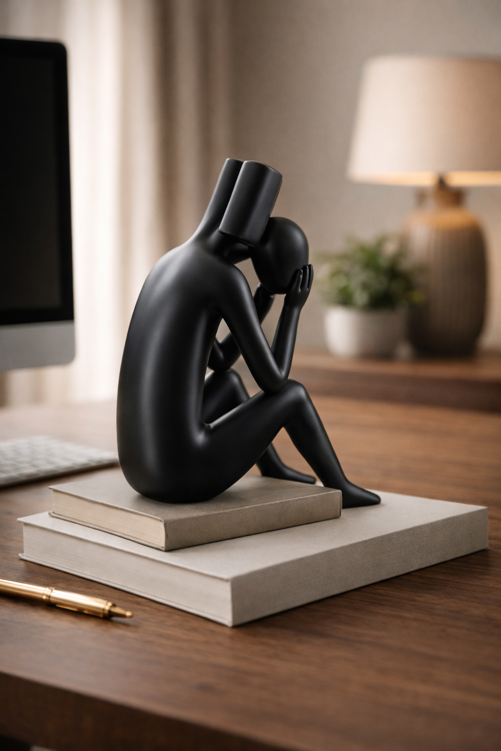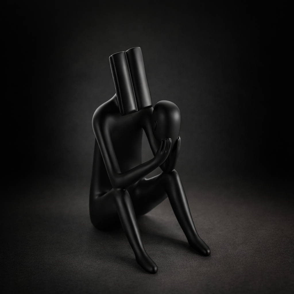 A poetic blend of emotion and design, The Thinker captures a moment of introspective stillness. This abstract black sculpture reflects a quiet power—one that resonates with modern minimalism, personal reflection, and artistic soul.