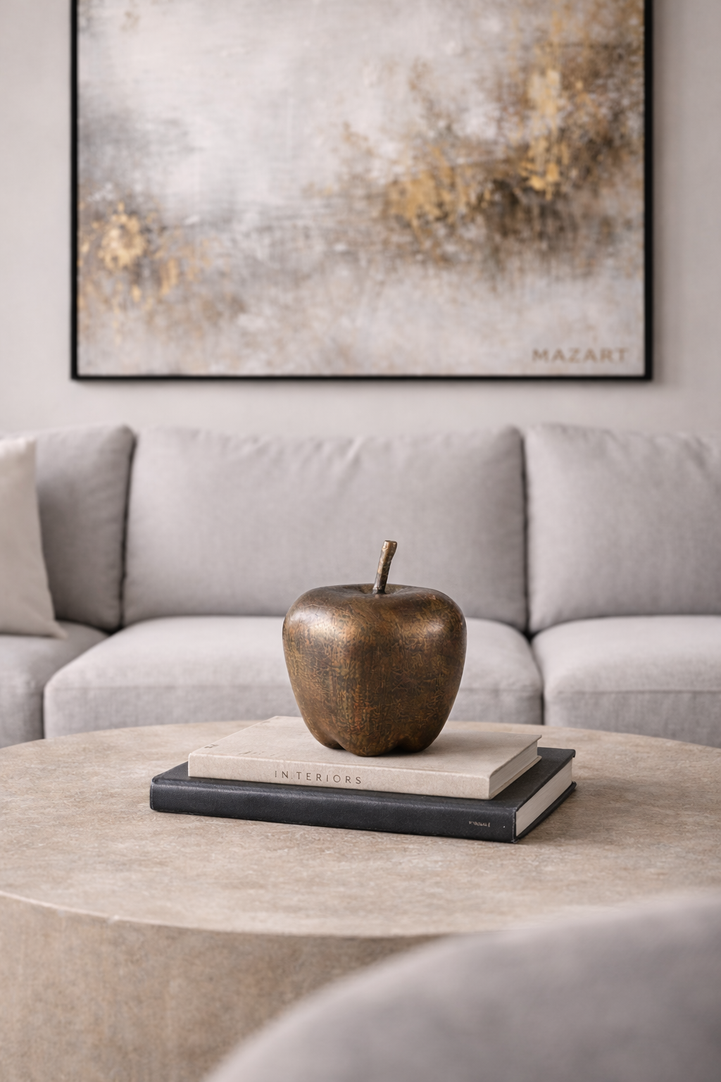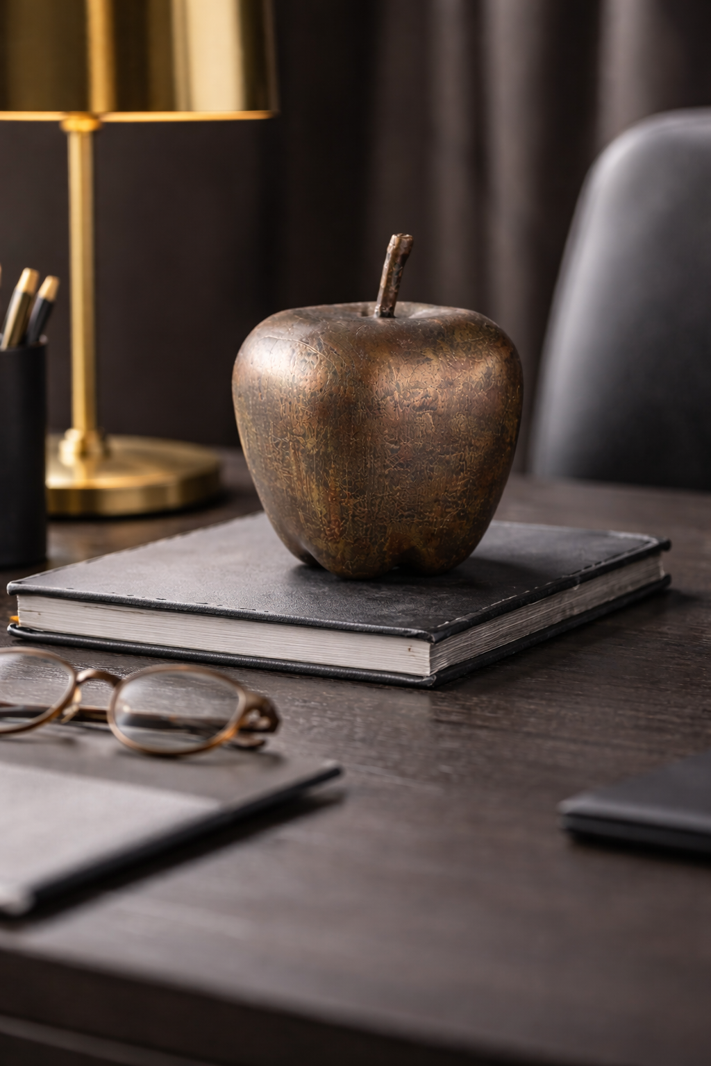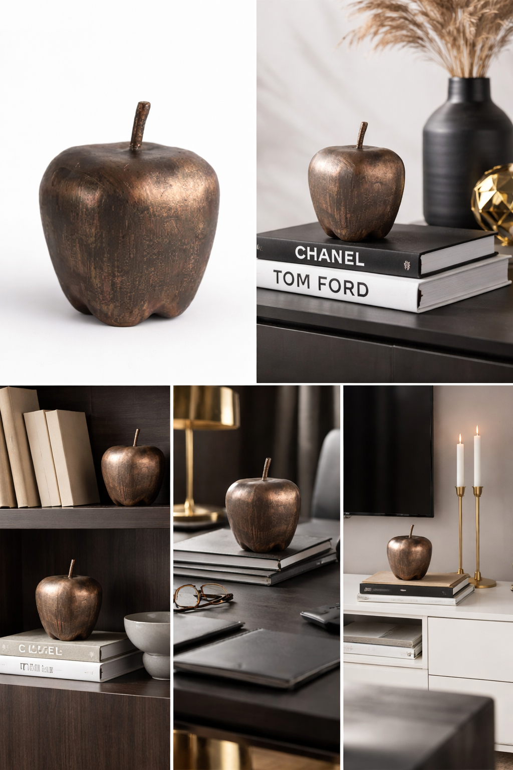 A sculptural bronze apple with antique finish — Antique Bronze is a warm, timeless decorative accent for elegant interiors.