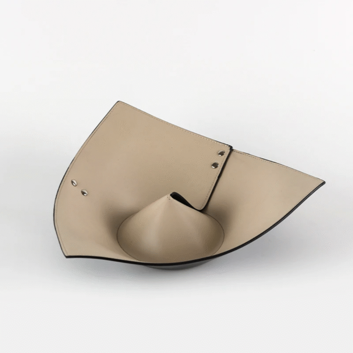 The Curved Decorative Bowl Tray brings together artful design and everyday function. Crafted from premium beige leather, its distinctive folded shape creates the perfect balance between a sculptural bowl and a practical tray. Subtle silver rivets add a touch of modern detail, while the curved silhouette brings artistic interest to any space.